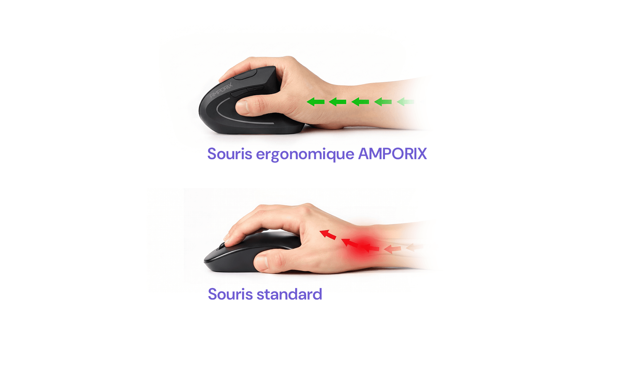 Chez AMPORIX, nous savons que la douleur à la main ou au poignet peut se développer avec le travail informatique quotidien. C'est pourquoi nous sélectionnons des solutions qui aident à protéger votre confort et votre santé, aujourd'hui et à long terme.